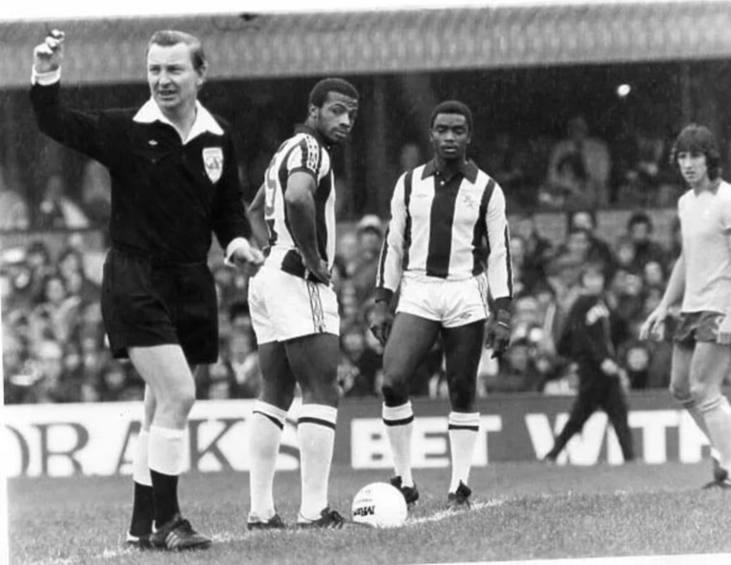 This time, it's West Bromwich Albion vs Ipswich Town - Cyrille Regis, Laurie Cunningham and Paul Mariner look on.